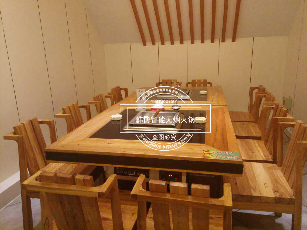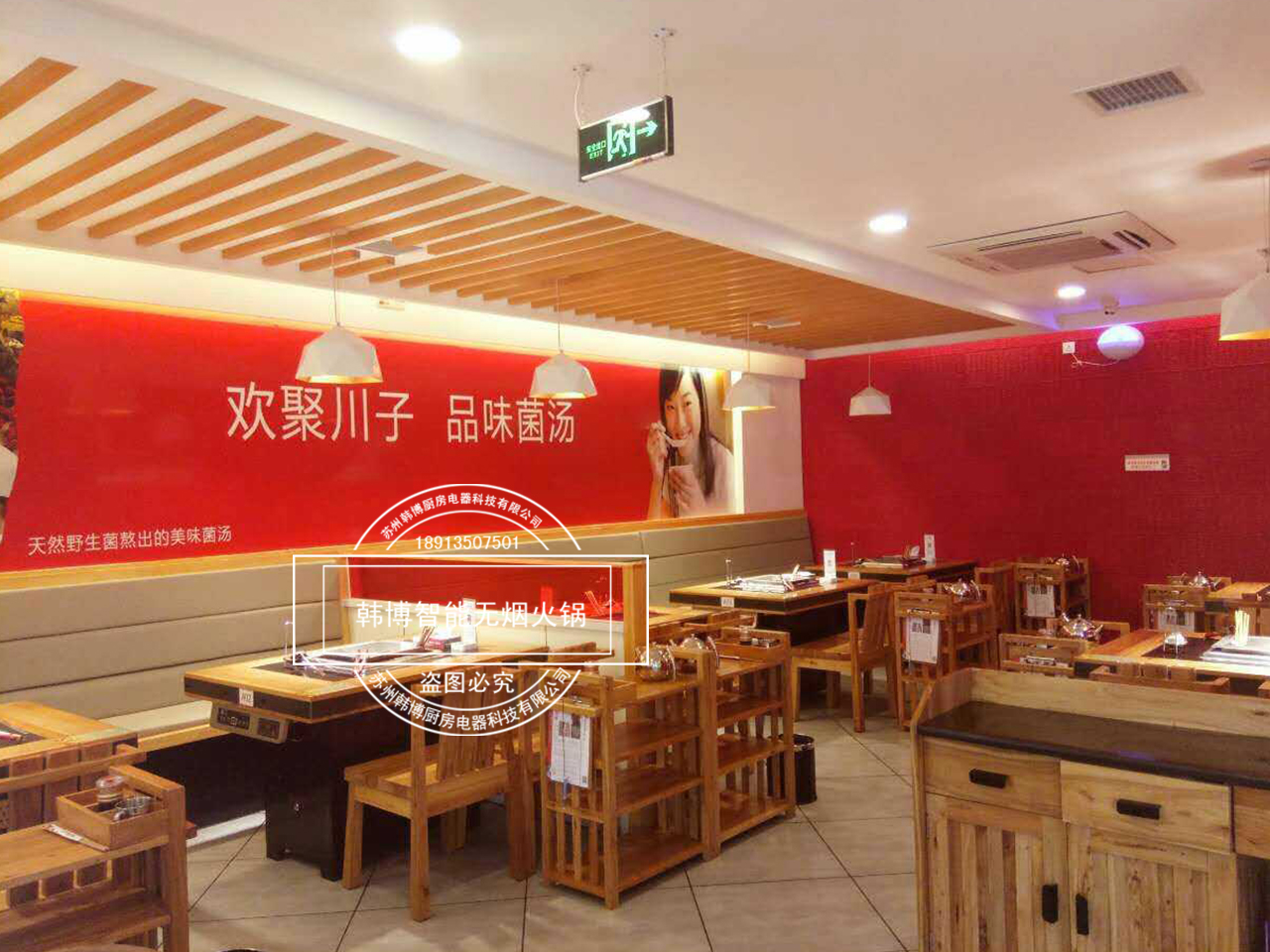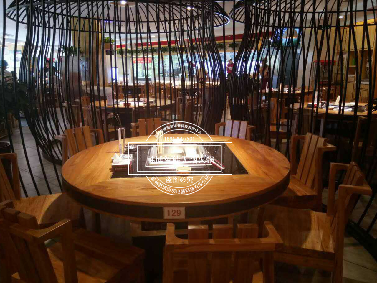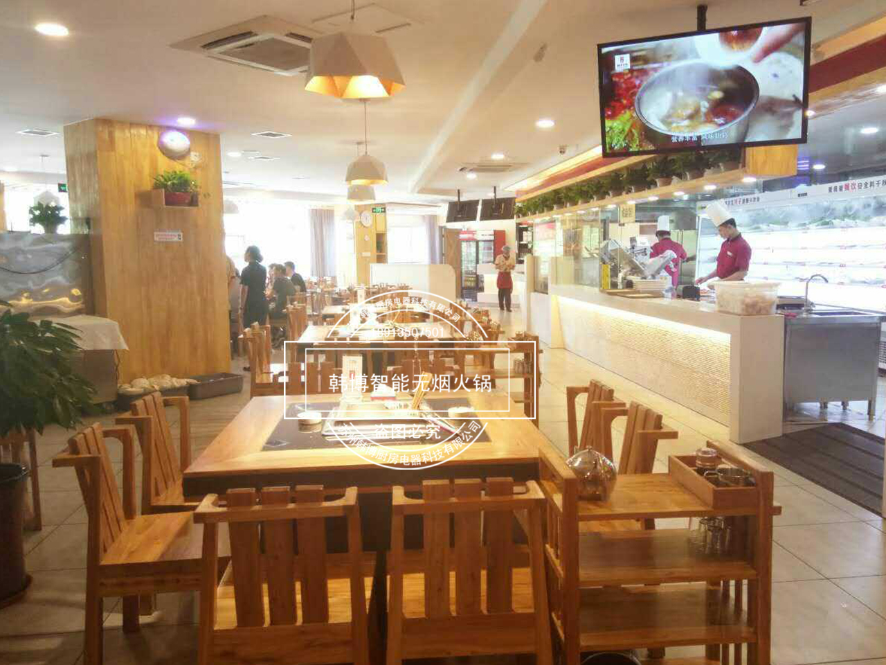 店內特別之處就是老板從韓博定制的智能無煙火鍋凈化設備,安裝在了每張桌子下面,因為吸油煙率達到了99%,所以前來吃火鍋的顧客,再也不用擔心受到油煙味的困擾。