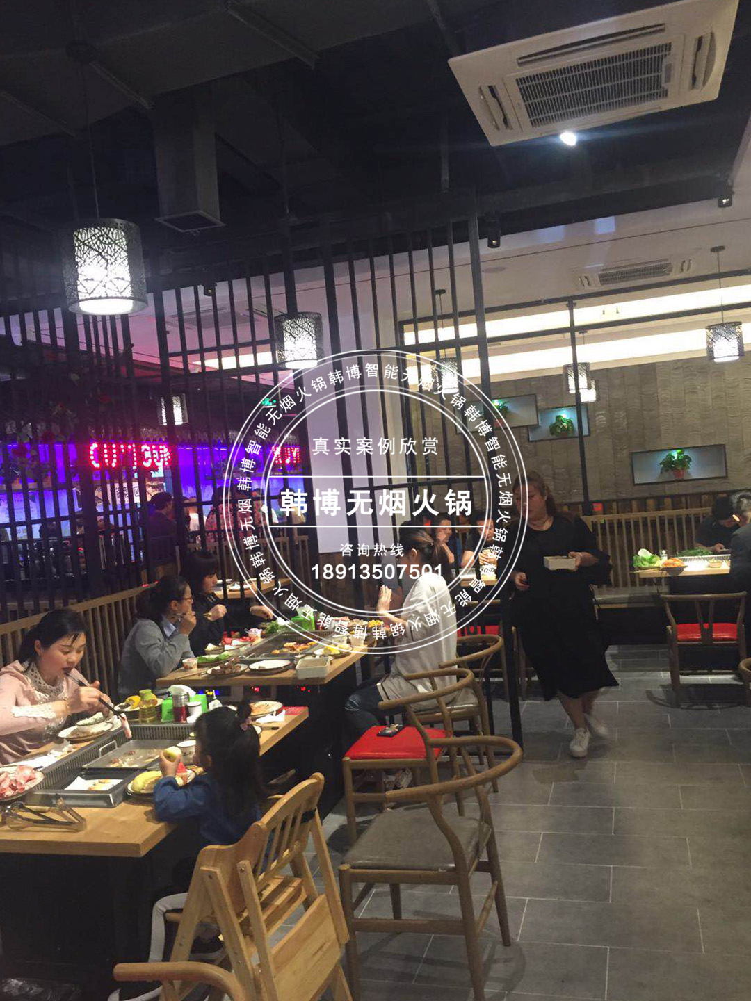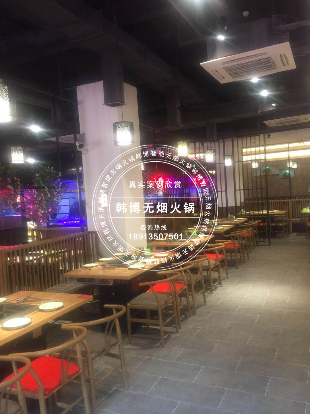 店里進(jìn)來超寬敞,而且裝修十分古色古香在昏黃的燈光襯托下,整個餐廳顯得分外古樸典雅,與傳統(tǒng)火鍋燒烤店不同的是,這里的桌子不一般,底下都安裝了韓博油煙凈化系統(tǒng),微電腦觸摸屏設(shè)計,油煙凈化效果更好。
